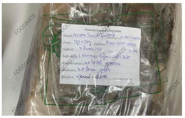 泰国公共卫生部8月23日消息:泰国食品药品监督管理局在曼谷港食品药品检查站随机抽取食品样品检验。从中国进口的冷冻章鱼触须产品镉含量超标。产品详情如下: