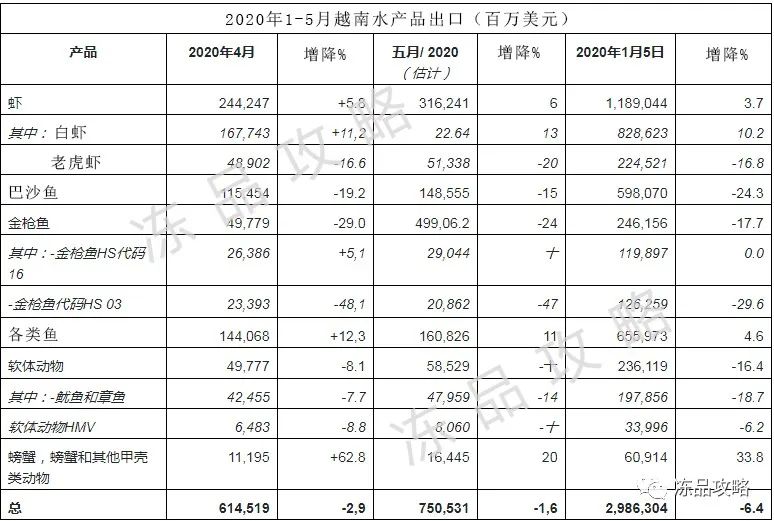 巴沙鱼5月的出口相比4月正逐渐恢复,但与去年同期相比,仍低于15%,5个月后的结果估计为近6亿美元,下降了24%。