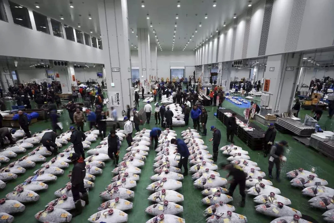 2018年底搬迁后,新地址丰洲市场也曾盛极一时,就在疫情在国内爆发前的不久,丰洲市场还以1.932亿日元(约合人民币1245万元)拍出天价金枪鱼,现场人声鼎沸,热闹至极。