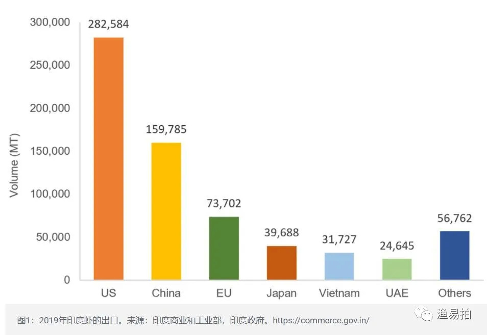 印度工商部的数据显示,2019年印度生产了804,000吨虾比2018年的615,692吨的虾产量增长31%,虾出口增长8%达到 667,140吨,占2019年虾总产量的83%。