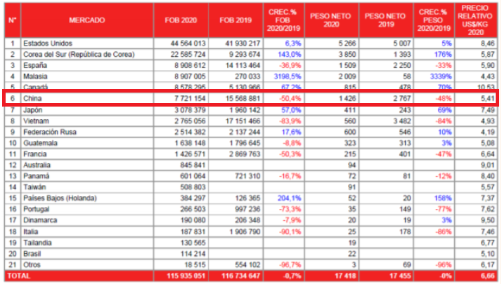 近年来,秘鲁对中国,韩国和日本的虾出口一直在增长。然而,今年以来,餐饮和饭店业的关闭以及后来冠状病毒与进口海产品之间的负面联系报道导致了中国对进口海鲜(尤其是虾和三文鱼)的需求受到打击。