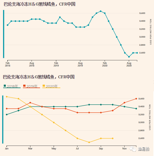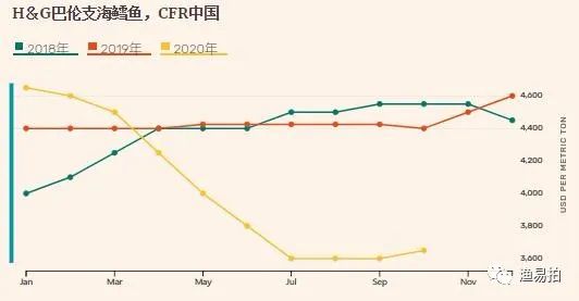 他说,随着夏季在欧洲和美国重新开放餐饮服务以及在零售商处设有鱼类柜台,市场已经有所改善。但是,欧洲和美国的病例都在迅速增加。 他说:“冬天来了,许多人怀疑情况会恶化。这意味着我们所有人都要工作。” 目前,H&G鳕鱼的基准1-2公斤大小的鳕鱼价格正在复苏。H&G的价格过去大半年已经从COVID-19之前$ 4,500- $ 4,600/吨跳水到$ 3,600/吨(CNF中国),并一直稳定在这个水平。
