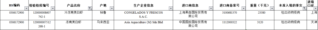 其中,因“检出动物疫病”未准入境虾类163.379吨: