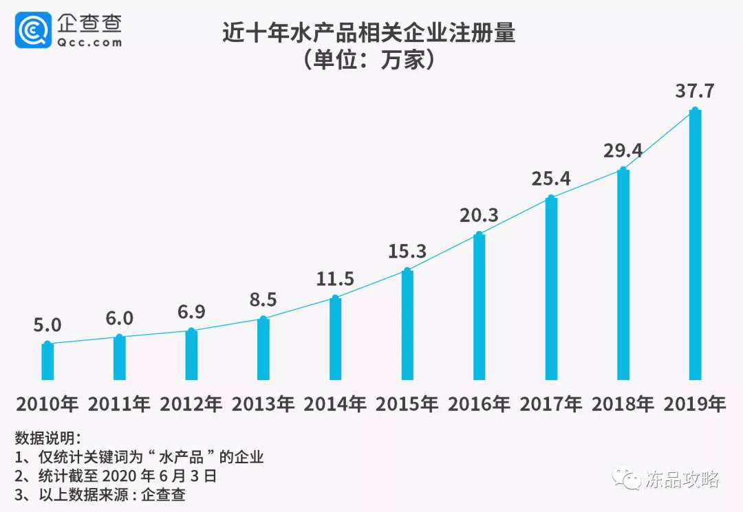 近十年来,我国水产品行业供给呈稳步上升趋势,相关企业注册量也逐年上升,2019年水产品相关企业注册量达到37.7万家,较十年前同比上升了647%。中国一直占据全球水产养殖产量的60%以上,中国水产行业的变动直接影响着全球水产市场。